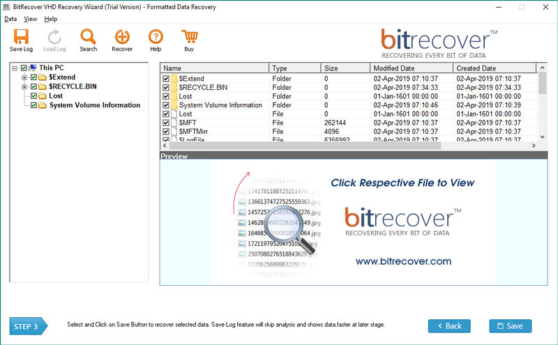 Yukarıdaki blog yazısında, yozlaşmış VHD dosyalarından dosyaları ve klasörleri başarıyla çıkarıyoruz. Hasarlı VHD dosyasından fiziksel sabit diske verileri geri yüklemek için profesyonel bir araç setinin yardımını alıyoruz. Yardımcı program işlevinin deneme sürümü, ücretli lisans baskısı ile aynıdır. Ancak, Veri ve Klasör ayrıntılarını görüntüleyebilir ve okuyabilir, çünkü Veri seçeneğinin kaydedilmesi deneme sürümünde devre dışı bırakılır.