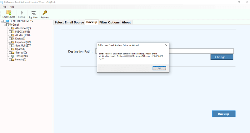 - Bir Konum SeçinDosyayı kaydetmek istediğiniz bilgisayarınızda. Ardından yedekleme düğmesini tıklayın.