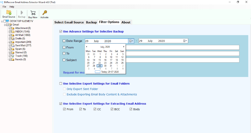 - KullanınFiltre SeçenekleriSunuculardan e -posta adresini çıkarmak için Seçici Dışa Aktar seçeneğini listeleyin ve seçin.
