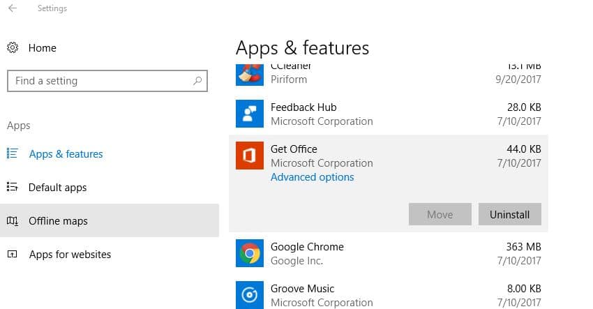 - Sonra, tıklayınUygulamalar ve ÖzelliklerSekme, eksik uygulamanın adını bulun.