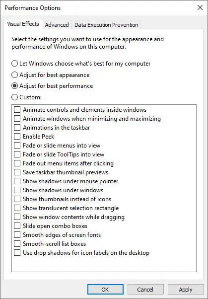 - “En iyi performans için ayarla” seçeneğini seçin ve “Uygula” ve ardından “Tamam” düğmesine tıklayın.