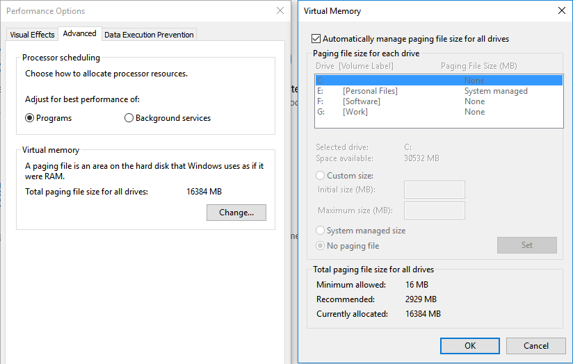 Pagefile.sys Dosya Boyutunu Otomatik Olarak Ayarlayın