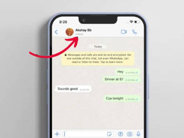 - 3WhatsApp'ta aktif olduklarında adlarının altında görünen kişinin çevrimiçi durumunu arayın.