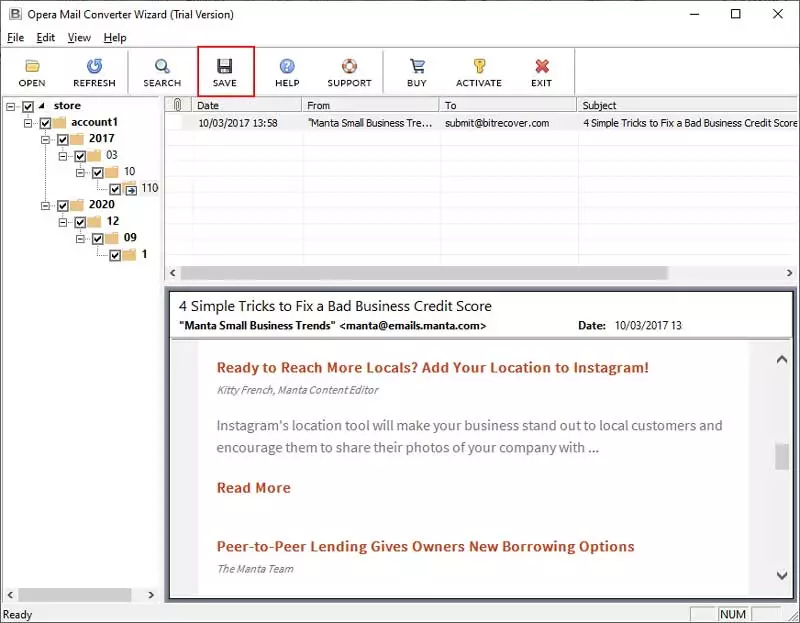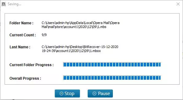 - Opera Mail klasörlerini seçinyazılım penceresinden ve tüm bilgilerin ön izlemesini yapın.