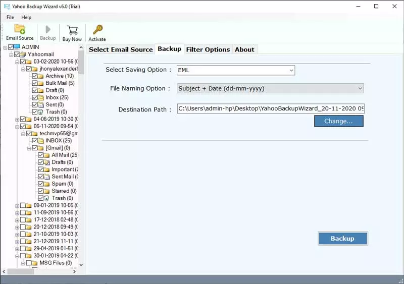 - tuşuna basınDosyasimgesini tıklayın ve göz atınhedef yoluortaya çıkan posta kutusu dosyasını depolamak için.