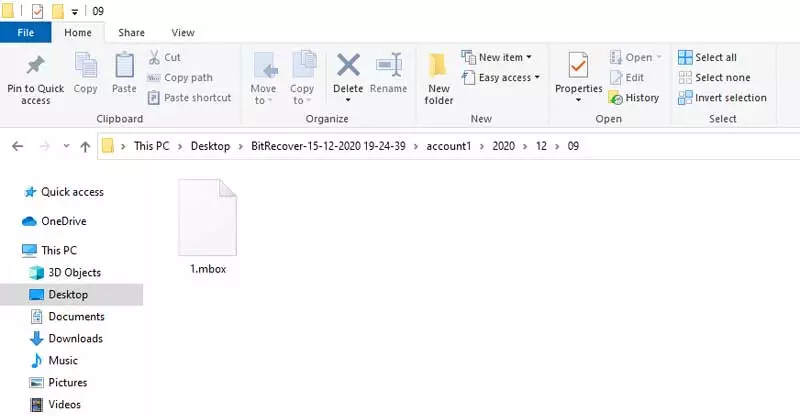 6 – Bundan sonra hedef klasörü açın vesonuç posta kutusu(.mbox) dosyaları.