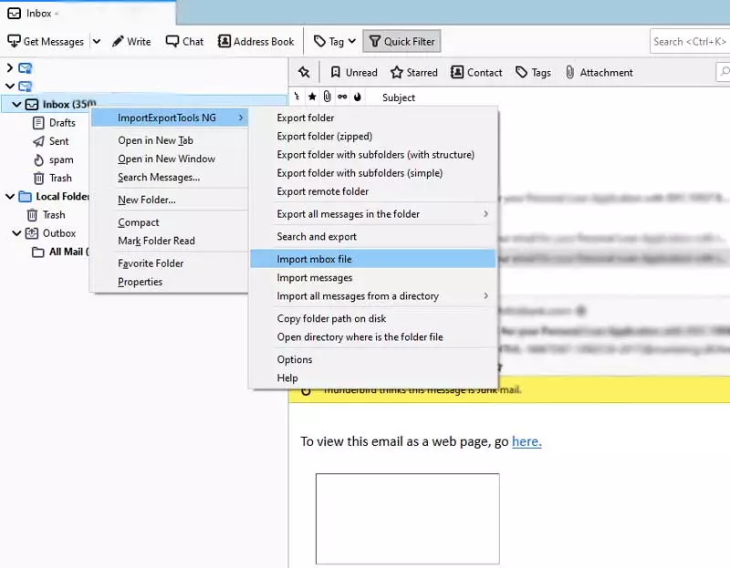 - Sonunda Mozilla Thunderbird'ü çalıştırın veiçe aktarmaksonuçposta kutusu dosyasıtamamlanması için.