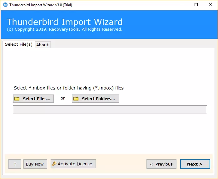 - İlk olarak, önerilen yazılımı başlatın ve bir seçenek seçin"Dosyaları seç"veya"Klasörleri seç".mbox dosyaları eklemek için.
