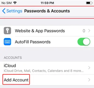 - Seçin"Hesap Eylemleri">>"Posta hesabı ekle"simge.