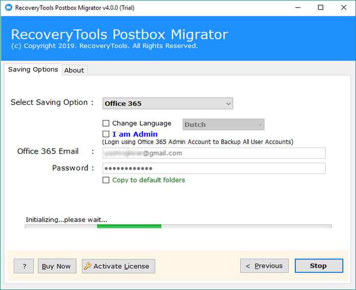 - Öncelikle,Postbox'ı Microsoft 365 Taşıma Yardımcı Programına indirin ve başlatınherhangi bir Windows makinesinde.