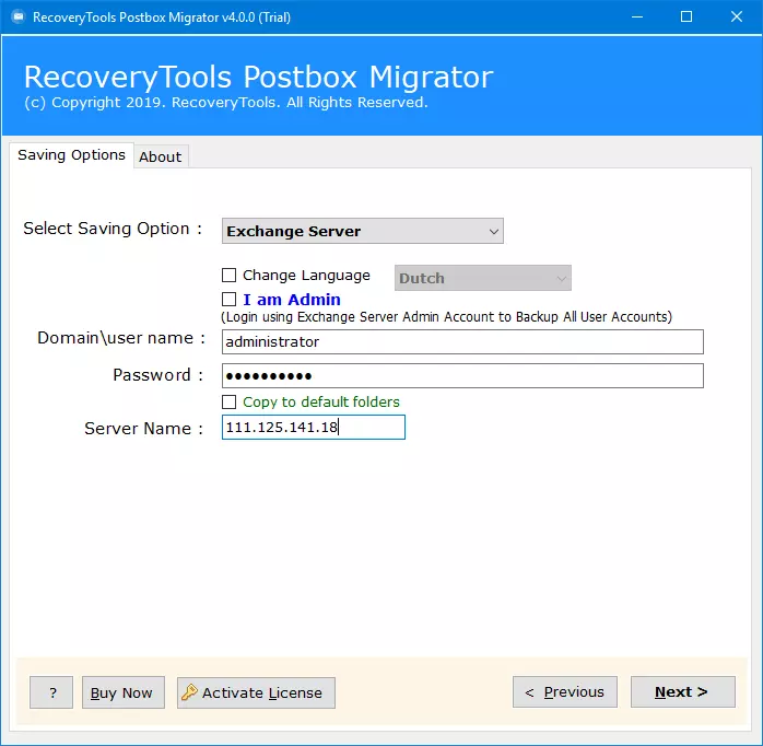 Yazılım ayrıca, postbox e -postalarının barındırılan Exchange sunucusuna geçiş yapmasına izin verir. Öyleyse, bu aracın nasıl çalıştığını kontrol edelim.