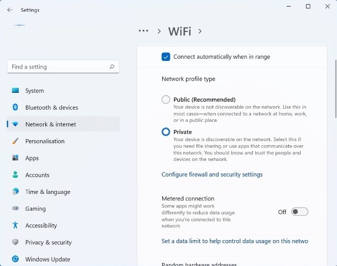 - Şimdi İnternet bağlantınızı seçin ve ardından ölçülü bağlantı geçişini kapatın.