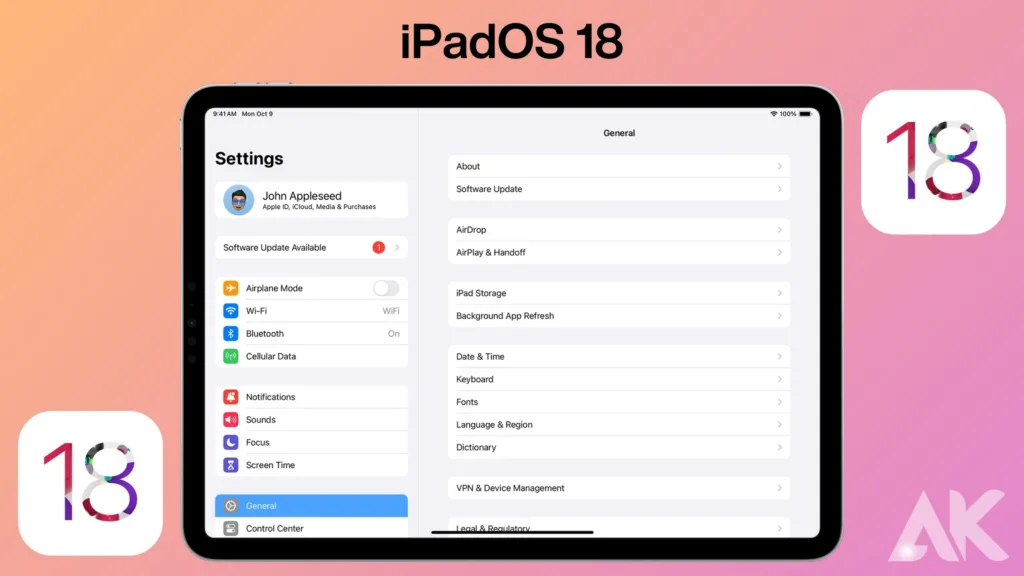Başlamadan önce iPad'inizin güncelleme işlemine hazır olduğundan emin olmak önemlidir. İlk olarak, güncellemenin kesintiye uğramaması için cihazınızın bir güç kaynağına tamamen yüklendiğinden veya takıldığından emin olun. Ayrıca, güncellemenin herhangi bir sorun olmadan indirilmesi için iPad'inizi kararlı bir Wi-Fi ağına bağlamalısınız. İPados 18 Nasıl Yükleneceğine İlişkin Talimatlar Şimdi iPad'iniz hazır olduğuna göre, iPados 18'i yükleme işlemine başlayalım. Başlamak için iPad'inizin Ayarları Uygulamasına gidin ve “General” a dokunun. Bu listeden “Yazılım Güncellemesi” ni seçin.
