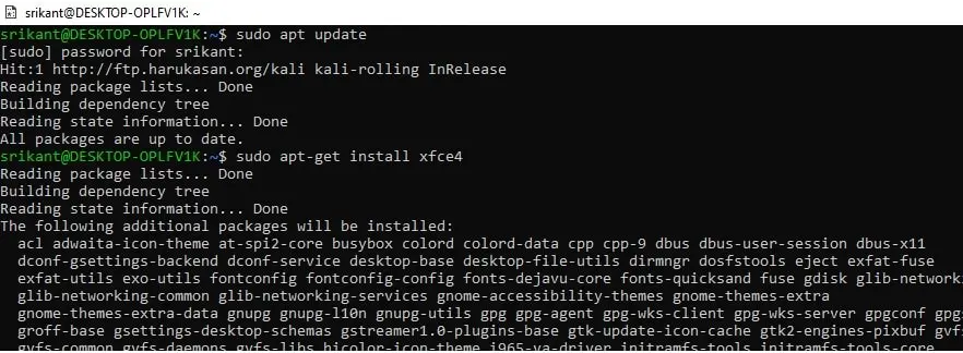 Not: XFCE4'ü indirmek ve yüklemek biraz zaman alacaktır. PC donanım yapılandırmasına ve internet hızına bağlıdır.