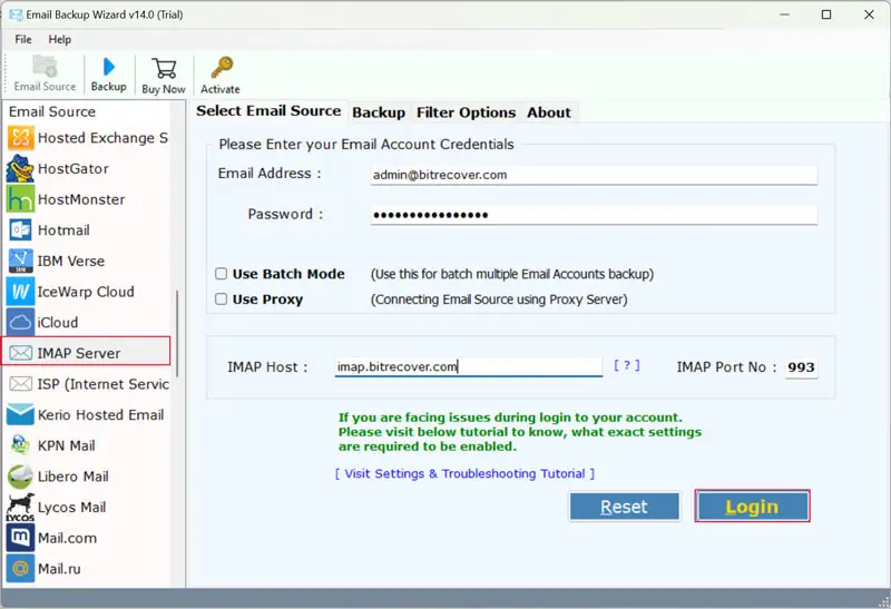 - IMAP ayrıntılarını içeren MailFence hesabınızın oturum açma ayrıntılarını girin: