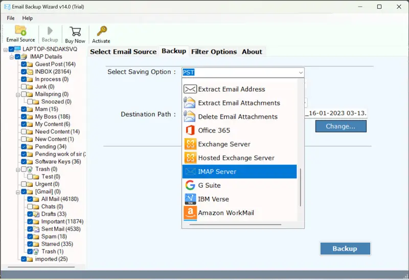 - Kaydetme seçeneği seçin düğmesindenİmap sunucususeçenek.