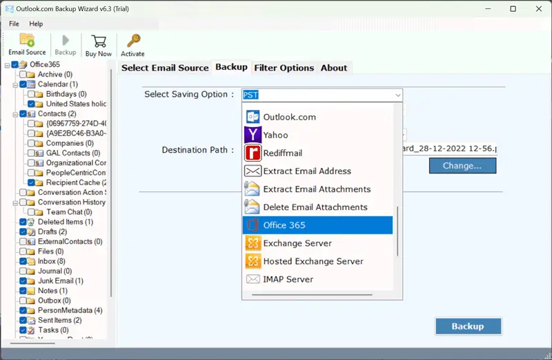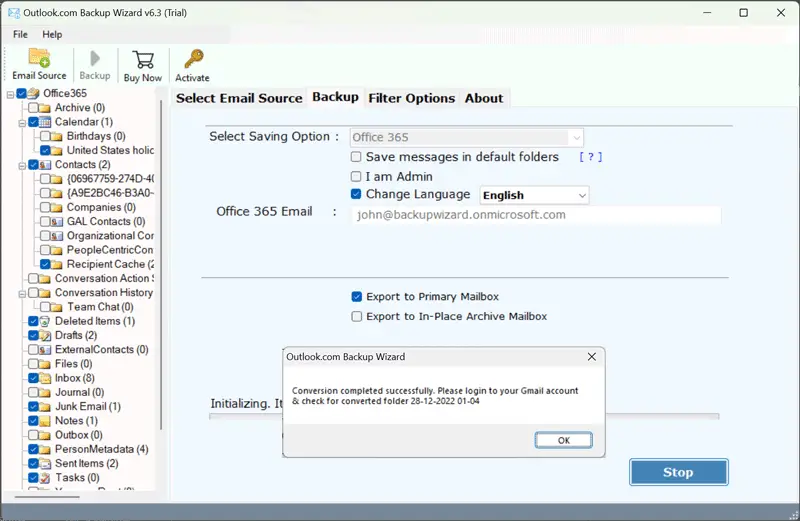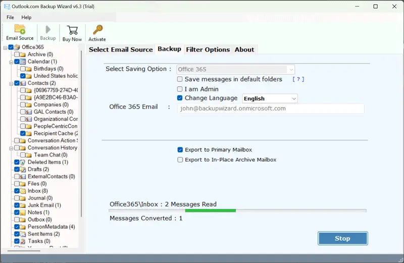 Ans:Ücretsiz demo sürümünü kullanarak, en iyi 25 e -posta öğesini Outlook.com hesabından Microsoft 365 hesabına taşıyabilirsiniz.
