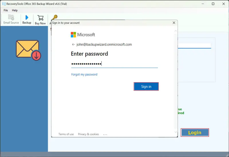 - Önerilen yazılımı başlatın, Paylaşılan Office 365 Posta Kutusu e -posta adresini girin ve basın.Giriş yapmak.