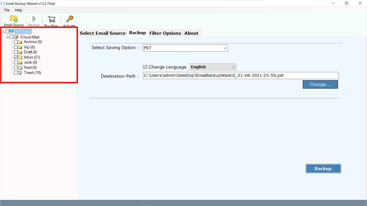 5. Nihayet,Bir hedef yola göz atınve tıklayınYedeklemeICLOUD E -postasını Çevrimdışı Açmak için.