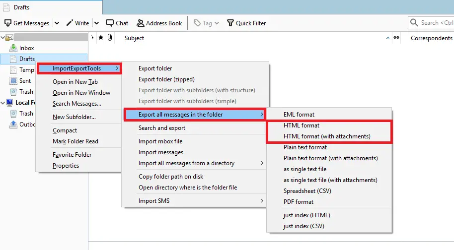 Chrome dahil tüm tarayıcılar, herhangi bir dosya verisini açmak için .html formatını destekleyin, bu yüzden önce yapmamız gerekiyorMbox dosyalarını HTML biçimine dönüştürün. Bağlantılı sayfayı takip ederek yapabilirsiniz veya bir Thunderbird hesabı yüklediyseniz verilen adımları izleyebilirsiniz.