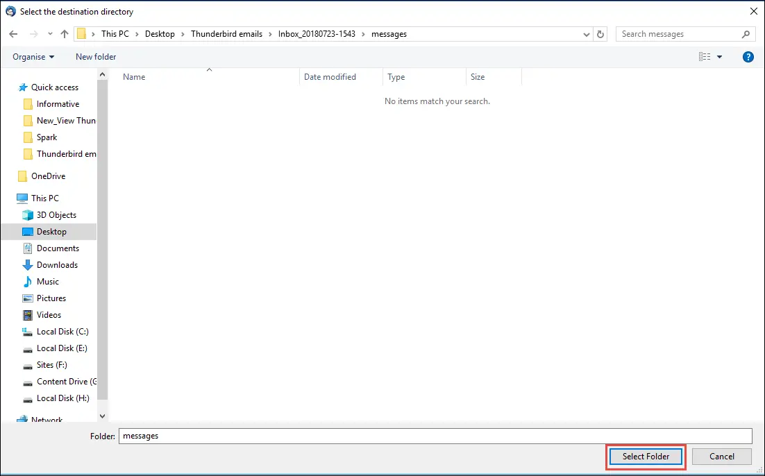 - 3. Adım:Önizleme için herhangi bir klasöre ve e -posta ile tıklayın.