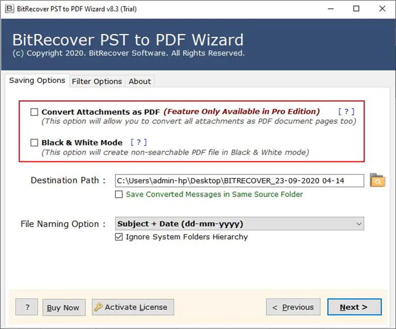 Outlook postalarını bir kerede toplu olarak verimli bir şekilde yazdırmanın en akıllı yolu, profesyonel bir araç kullanmaktır. Bitrecover PST - PDF dönüştürücü bu süreci gerçekleştirmek için inanılmaz bir araçtır. Kullanıcıların tüm verilerden belirli Outlook e -postalarını seçmelerine olanak tanır. Bu uygulama ile ilgili en iyi şey, işlemin tamamlanması sırasında dahili sistem klasör hiyerarşisini koruması veya yok saymasıdır. Acemi tarafından kolayca kullanılabilir.