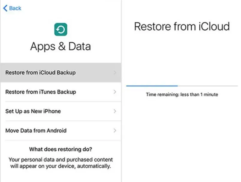 - 2. Ayarlara gidin ve istendiğinde verileri cihaza geri yüklemeyi seçin ve iPhone'un kilidini açık tutun.
