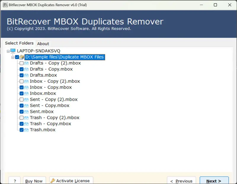 - ŞimdiGerekli Google Pileout dosyalarını seçinYinelenen e -postaları kaldırmak istediğiniz GUI yazılımından.