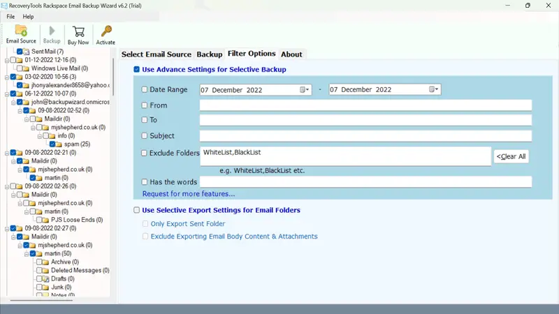 - Kullanmakİlerleme FiltreleriYinelenen e -postaları Google Pacout posta kutularından tarih aralığına, e -posta adresine ve e -posta konusuna göre kaldırmak için.