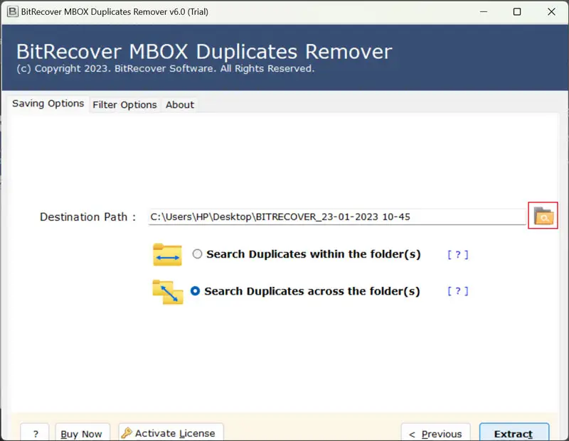 - Daha sonra,DosyaBelirli bir hedef klasöre göz atmak için simge. Ancak, yazılım otomatik olarakMasaüstüvarsayılan hedef yolu olarak.