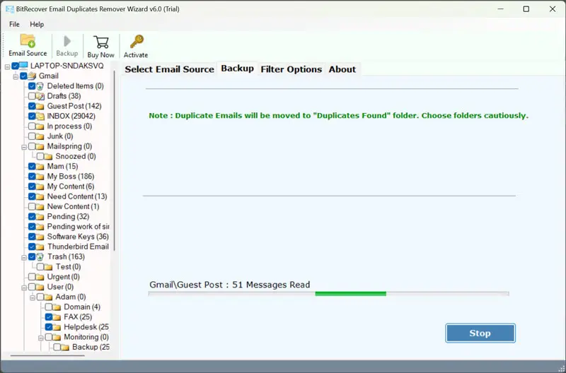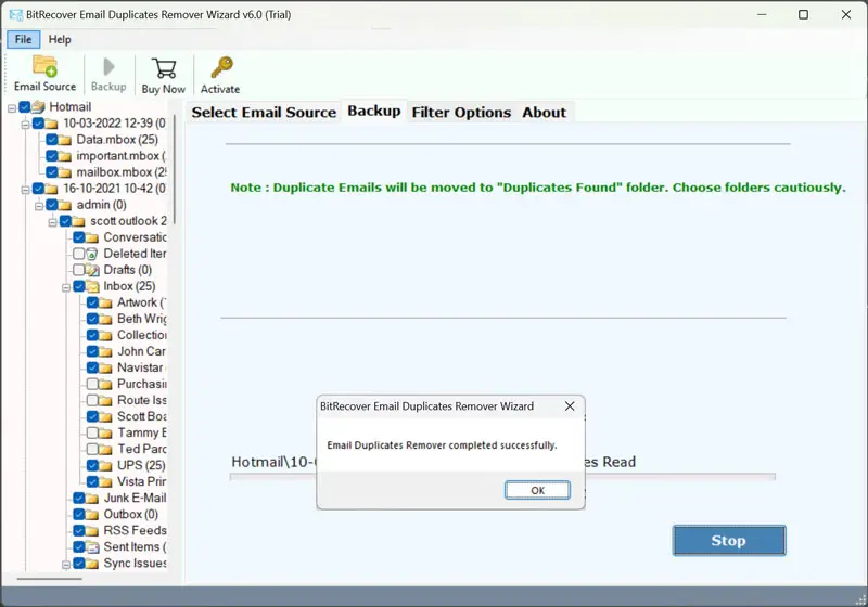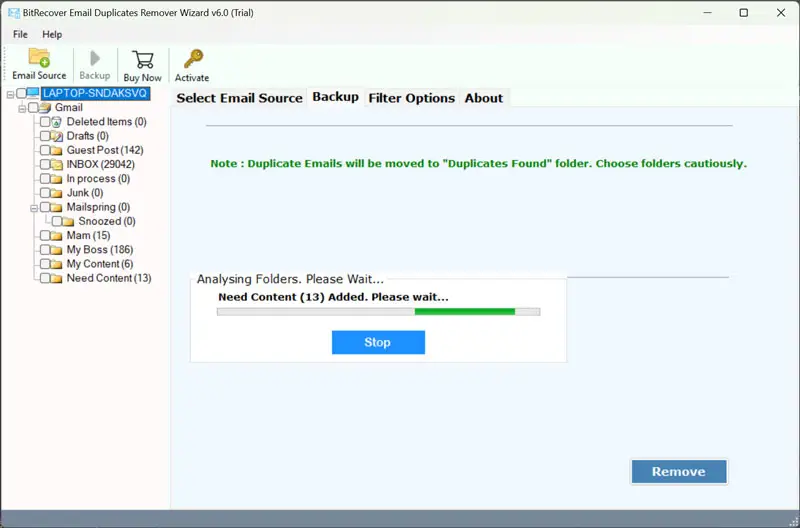 - Verilerin olmasını bekleyinYazılım paneline yüklendiZimbra kopya çıkarıcı tarafından.
