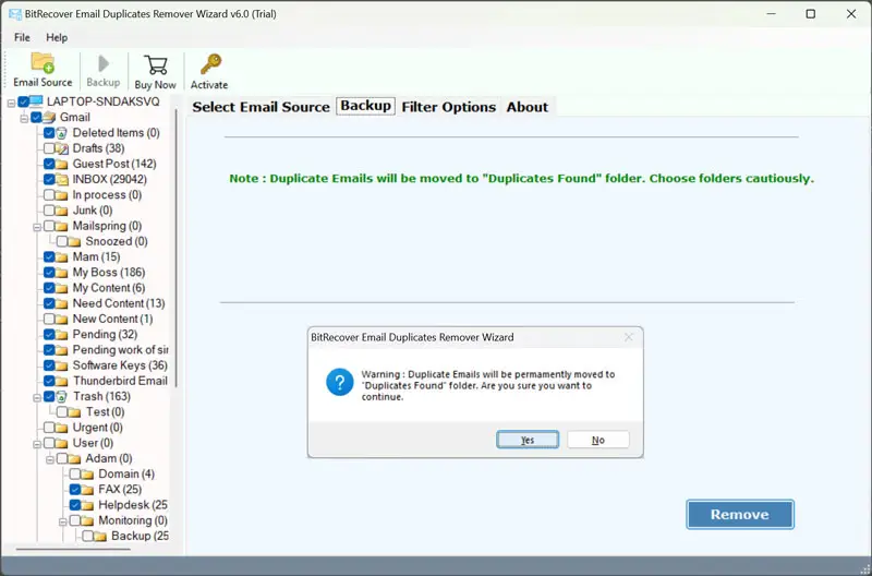 - TıkladığınızdaKaldırmakdüğmesi, bir uyarı bildirimi görüntülenir. TıklamakEvetonaylamak için.