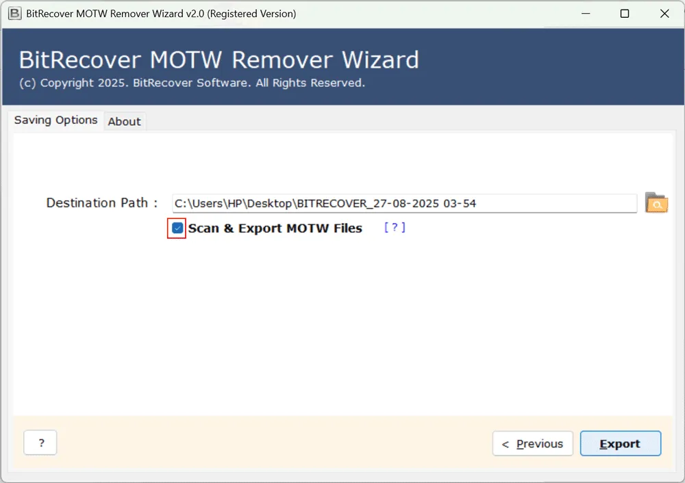 - Bundan sonra taramayı kontrol edin ve MOTW raporunu dışa aktarın.