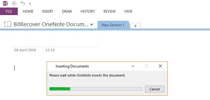 - Lütfen bekleyinOneNote belgeyi ekler.