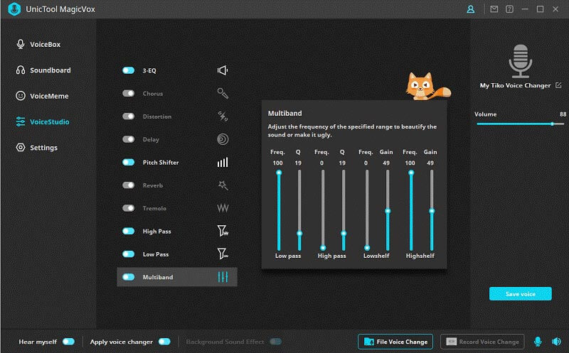 Orada sesinizi değiştirebilecek birçok özellik göreceksiniz. Sesinizin perdesini değiştirmekten geliştirmeye kadar mükemmel Ghostface sesini yaratabilirsiniz. Sesinizi olabildiğince özgün kılmak için yüksek geçiş ve alçak geçiş seçeneklerini kullanmayı deneyin.