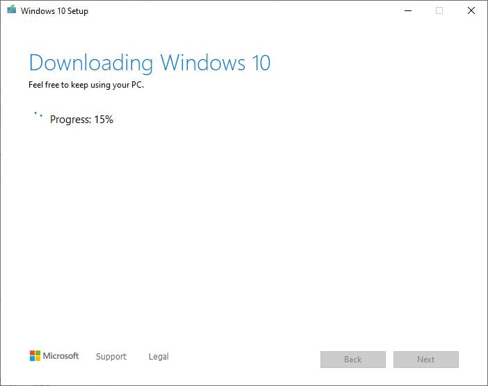 - Yapıldıktan sonra Windows 10 Media oluşturmaya başlayacaktır. Bu adımın tamamlanmasını bekleyin. Kurulum birkaç adımdan geçecektir.
