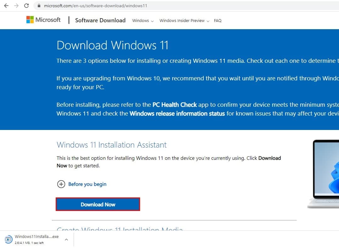 - AçWindows 11 sayfasını indirinVe tıklayınŞimdi İndiraltındaki düğmeWindows 11 Kurulum Asistanıbölüm.
