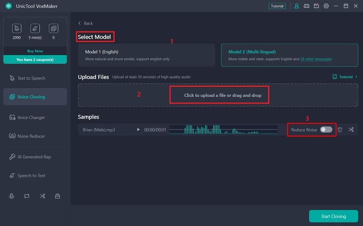 Bu adımları izleyerek UnicTool VoxMaker'ı kullanarak özel bir Mandela Kataloğu AI sesi oluşturabilirsiniz.