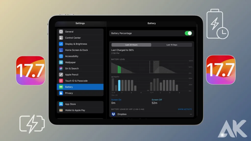 İPad'inizin iPados 17.7 Sistem Gereksinimleri Yükseltmesini denemeden önce yeterli pil ömrüne sahip olmasını sağlamak çok önemlidir. Apple, cihazınızın en az **%50 ** 'e ücretlendirilmesini veya güncelleme işlemi boyunca bir güç kaynağına takılmasını önerir. Bunun nedeni, bir yazılım güncellemesinin yüklenmesinin güç yoğun olması ve düşük pil nedeniyle kesintilerin eksik kurulumlara, potansiyel veri kaybına ve hatta tam bir cihaz sıfırlamasına yol açabilmesidir.