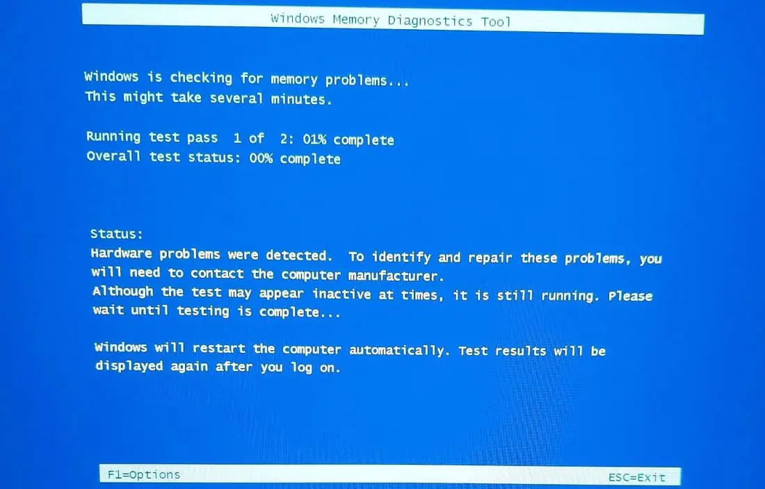 - Araç, RAM'inizde birkaç test çalıştıracak ve bulduğu hataları bildirecektir. Herhangi bir sorun tespit ederse, PC üreticinizle iletişime geçmenizi veya RAM modüllerinizi değiştirmenizi söyleyecektir.