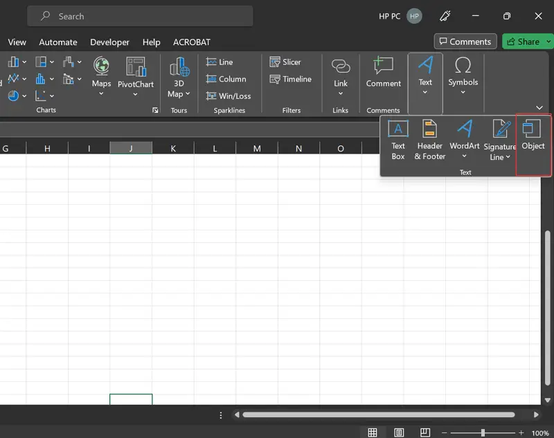 MS Excel, MSG dosyasını Excel elektronik tablo dosyalarına eklemek için dahili bir seçeneğe sahiptir. Excel'e msg dosyası eklemek için aşağıda belirtilen adımları tamamlayabilirsiniz: