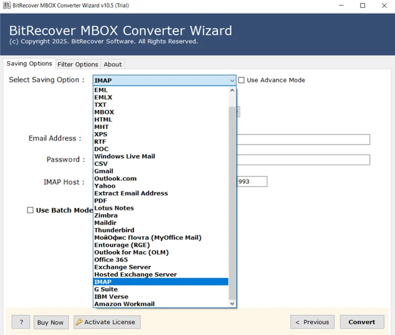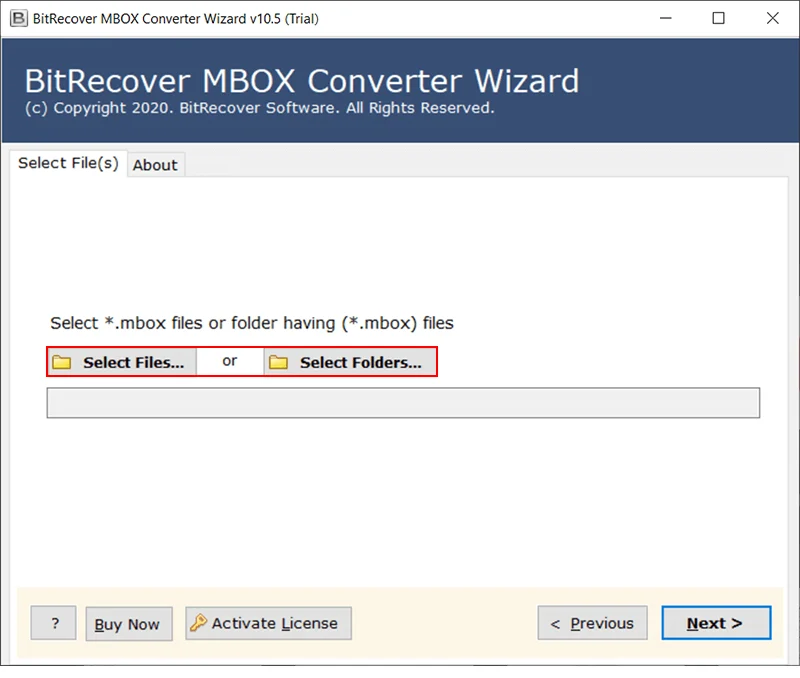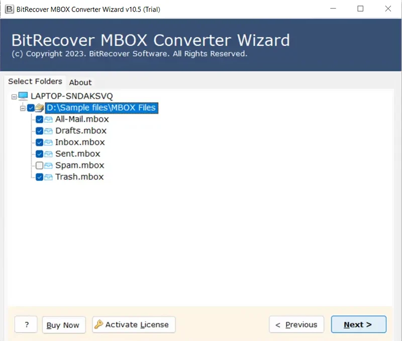 2. SeçinBireysel Mbox Dosyasıveyatüm klasörMbox dosyaları ile.