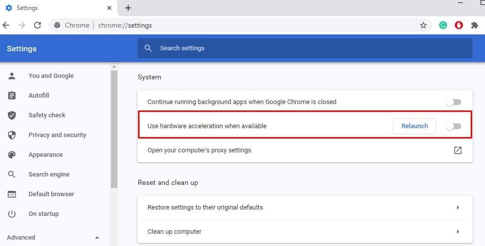 - Sistem bölümü altında 'Mevcut olduğunda donanım ivmesi kullanın' yanındaki anahtarı bulun ve kapatın.