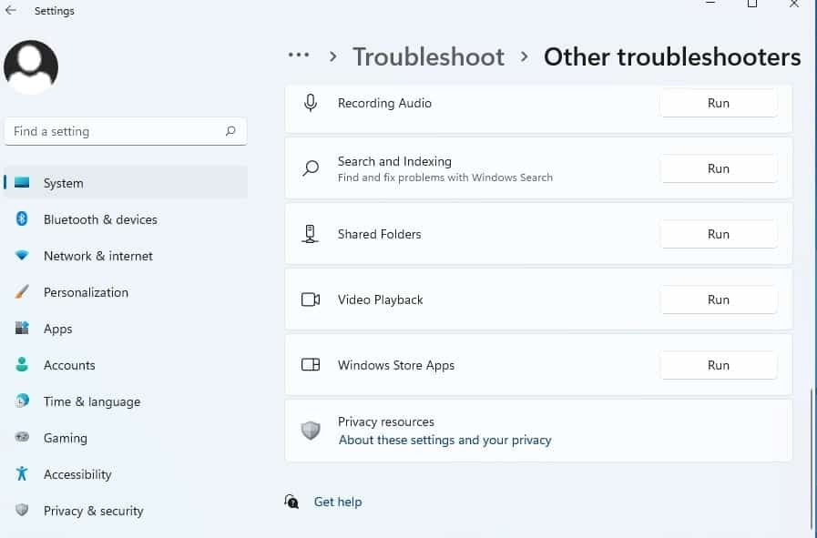 - Mevcut tüm sorun gidericileri görüntülemek için diğer sorun gidericileri tıklayın
