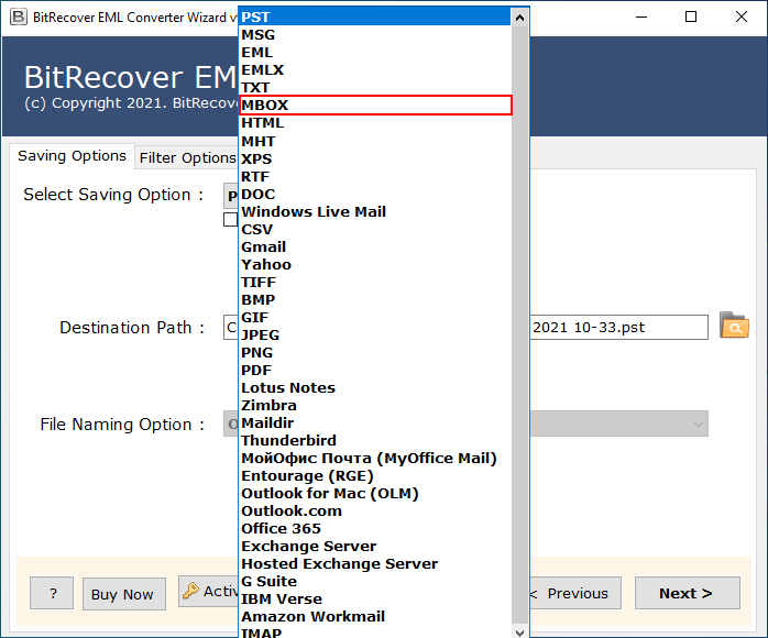 3. Bundan sonra yapabilirsinİstenen MAC uyumlu bir çıkış biçimi seçin(Mbox gibi).