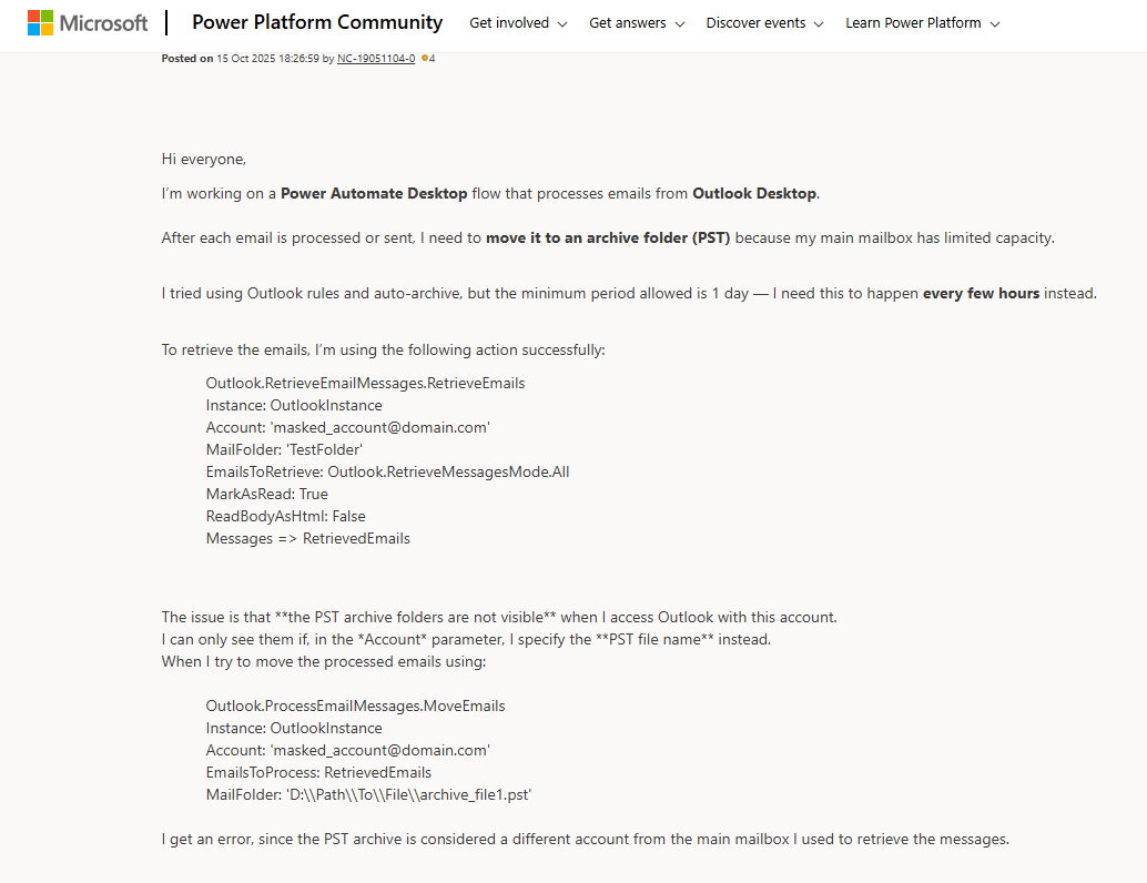 Sorun genellikle posta kutusu boyutunu küçültmek veya verileri cihazlar arasında taşımak için e-postalarını arşivleyen kullanıcıları etkiler. Özellikle iş kullanıcıları, sistem yükseltmelerinden, profil değişikliklerinden sonra veya bir arşiv dosyası harici veya ağ sürücülerine depolandığında bu hatayla karşılaşabilir.