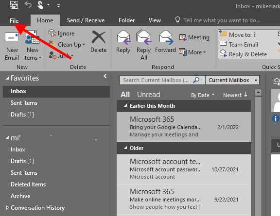 4. Posta kutusunu bulun ve etkilenen klasöre, örneğin Gelen kutusuna veya gönderilen öğelere gidin.