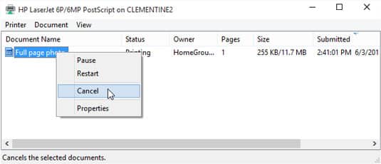 - Her yazdırma işine sağ tıklayın ve “İptal” seçeneğini seçin.