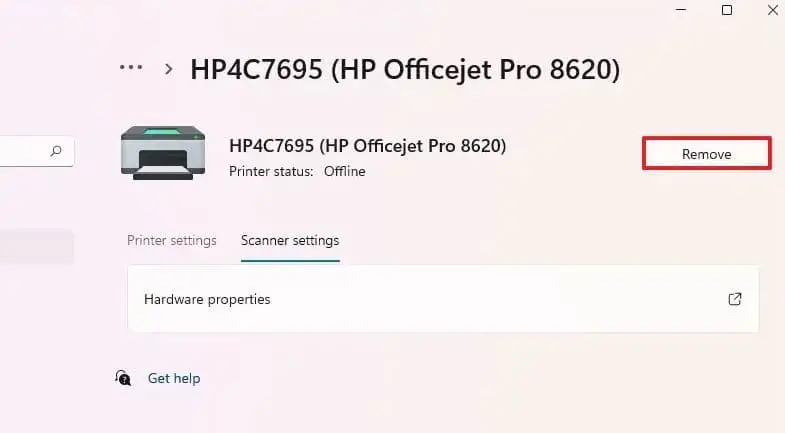 - Şimdi özelliklerini açmak için yazıcıyı seçin ve Kaldır düğmesini tıklayın.