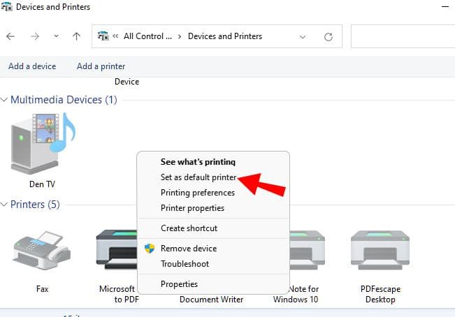 Kontrol panelini açın ve cihazlara ve yazıcılara gidin, hedef yazıcıyı sağ tıklatın ve varsayılan yazıcı olarak ayarlayın.